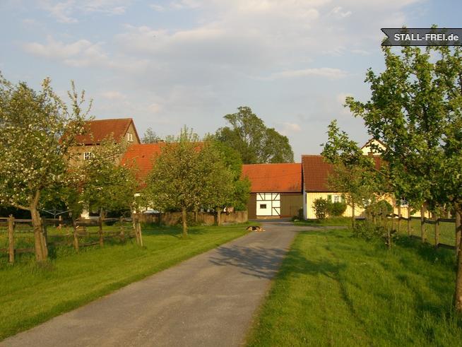 An den Offenstall schließt sich ein ca. 600qm großer befestigter Auslauf an. Ein ganzjährig nutzbarer Reitplatz ist vorhanden. Der Hof ist ideal für Geländereiter.